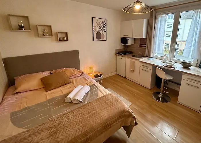 Eine Küche bietet den Gästen eine Reihe von Einrichtungen wie eine Mikrowelle und einen Toaster. Das Restaurant Azelya Restaurant Kebab serviert türkische Gerichte und liegt ungefähr 600 Meter von diesen Unterkünften entfernt. Die Apartments ist in circa 5 Gehminuten Entfernung von der nächstgelegenen Bushaltestelle Creux au Renard.